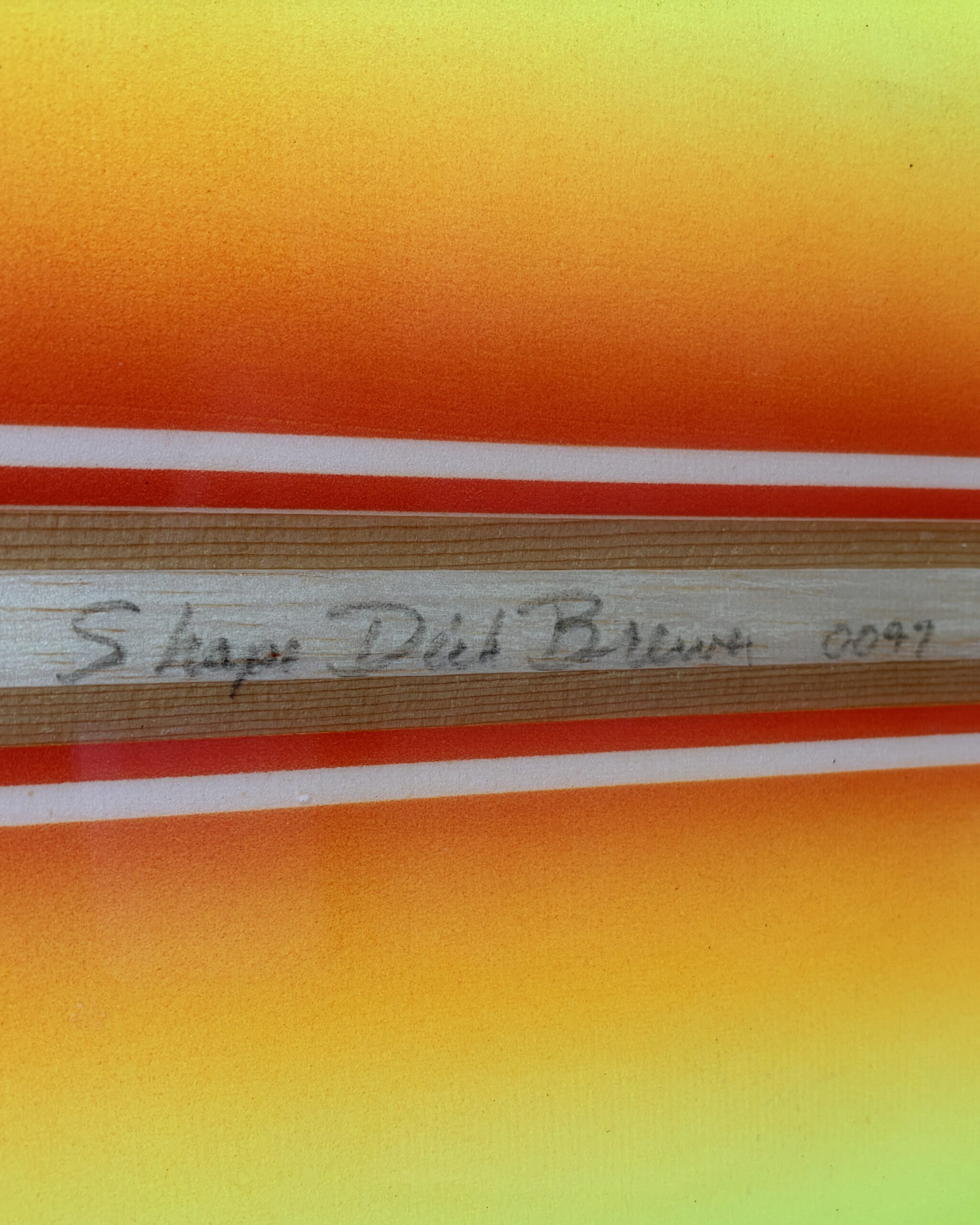 One of a pair of tow boards made back to back, serial number 0047. See adjacent green Dick Brewer Tow Board, serial number 0048.
