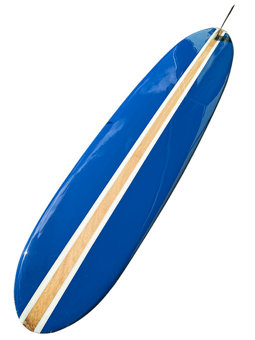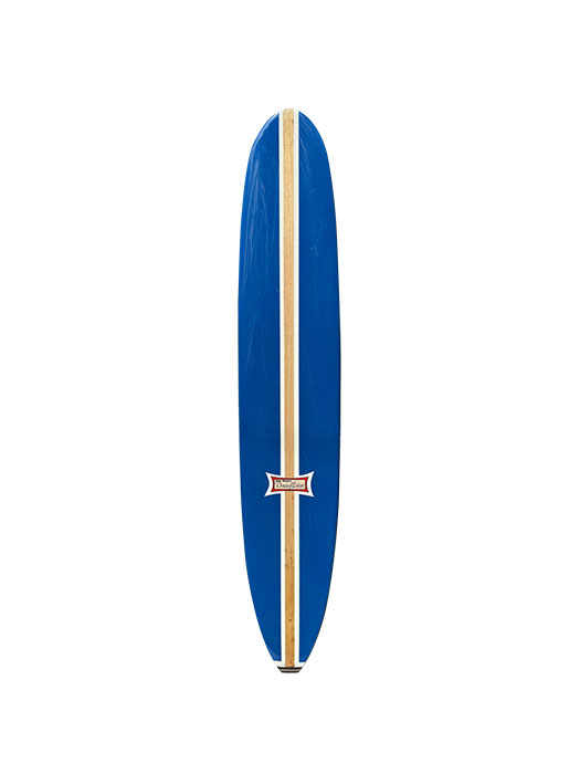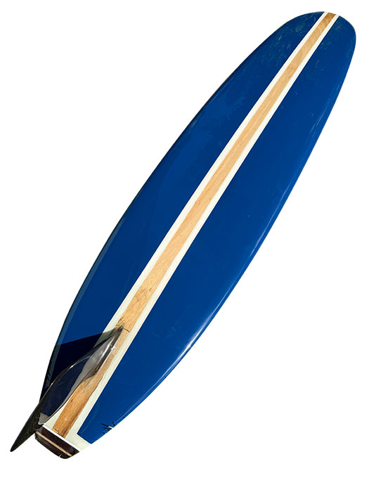 Own a standout example of surf history with this early Weber Performer longboard from the 1960s. Measuring 9’8″, this iconic model captures the bold style and performance-driven design that made the Performer one of the best-selling longboards of its era. Its striking blue panels highlight the board’s classic lines, while the extra-thick stringer and finely crafted wooden tailblock showcase Weber’s attention to detail and durability.