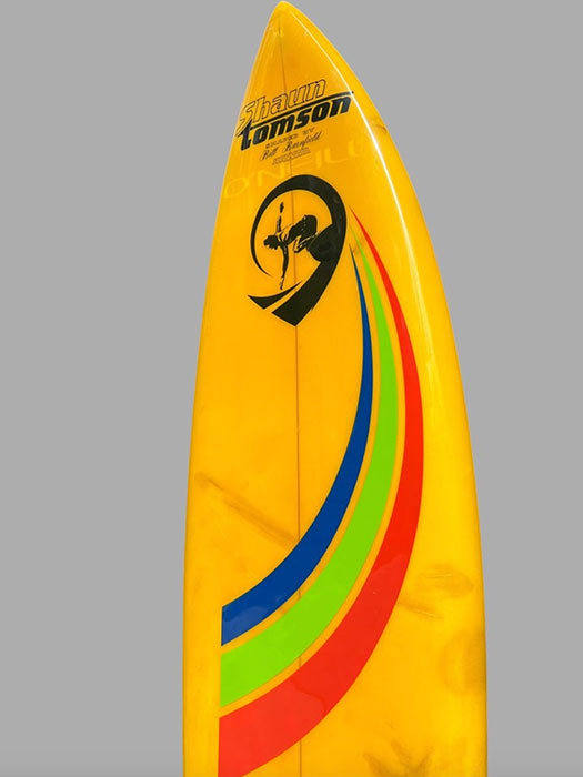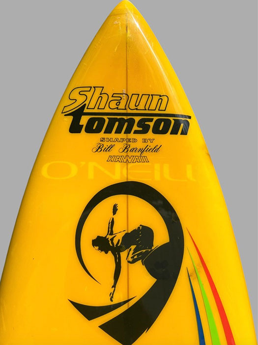Bill Barnfield is a top-tier Lightning Bolt shaper whose boards and guns were among the finest ridden by elite surfers on the North Shore. This board was carefully crafted to Shaun’s specifications following his Pipeline Masters victory at Banzai Pipeline in 1975.