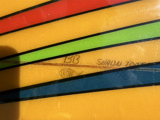 At the New Jersey Surfing Hall of Fame Induction Ceremony on June 1, 2025, Shaun Tomson was reunited with this very board and signed it for us (see attached photos). Upon seeing it, Shaun remarked, “I remember riding this board. Where did you get it? Wow.” INSTINCT later echoed the sentiment on social media: “It doesn’t matter if you are a World Champion or just some average bloke—there’s a special feeling you get when reunited with a stick from your past.”